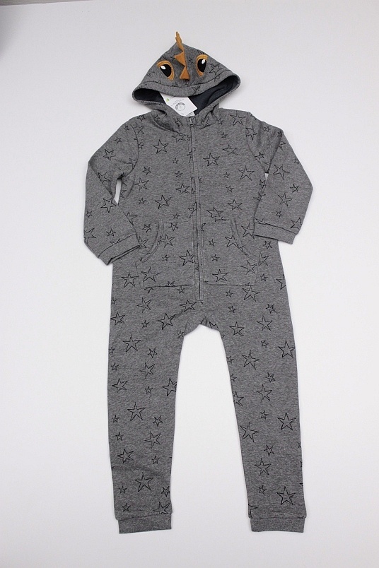 Salopeta baieti cu buzunare si inchidere cu fermoar. Gluga cu broderie si creasta dinozaur.