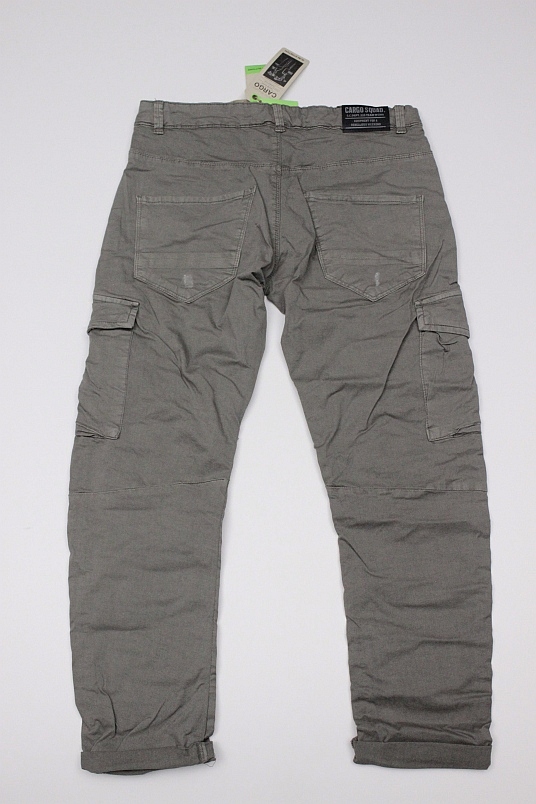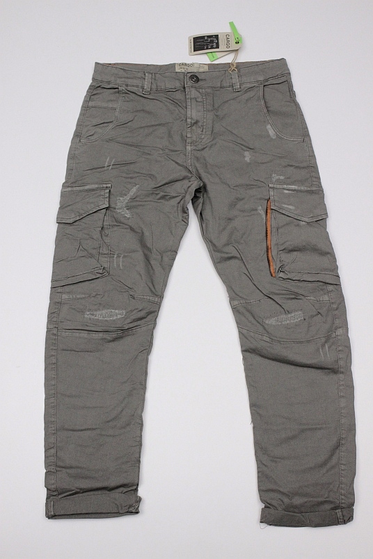 Pantaloni baieti din bumbac elastic, cu buzunare si talie reglabila. Aspect uzat.