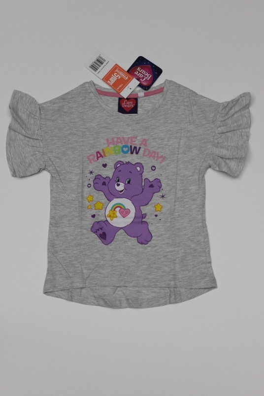 Tricou fete din bumbac cu imagine cauciucata. Volanas la nivelul manecilor.